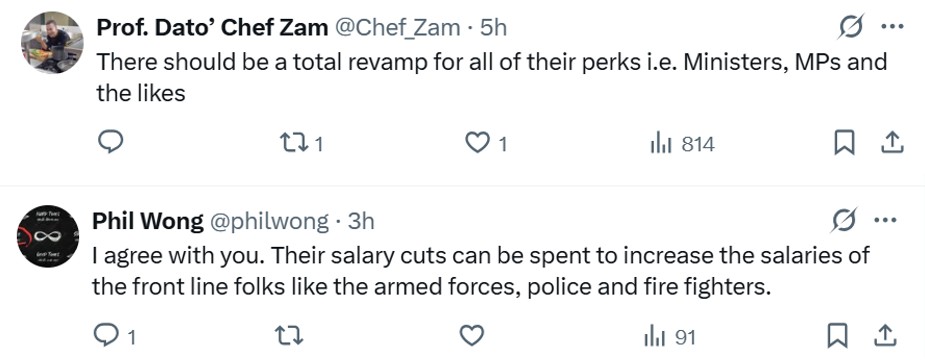 However, there were those who took the opposite view, feeling these bunch were already on “crazy salary”. This did not include other perks and pensions which should be done away with.