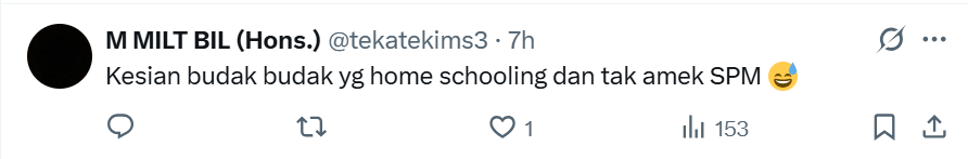 Also, @tekatekims3 sympathised with the home schooled kids who didn’t take SPM.