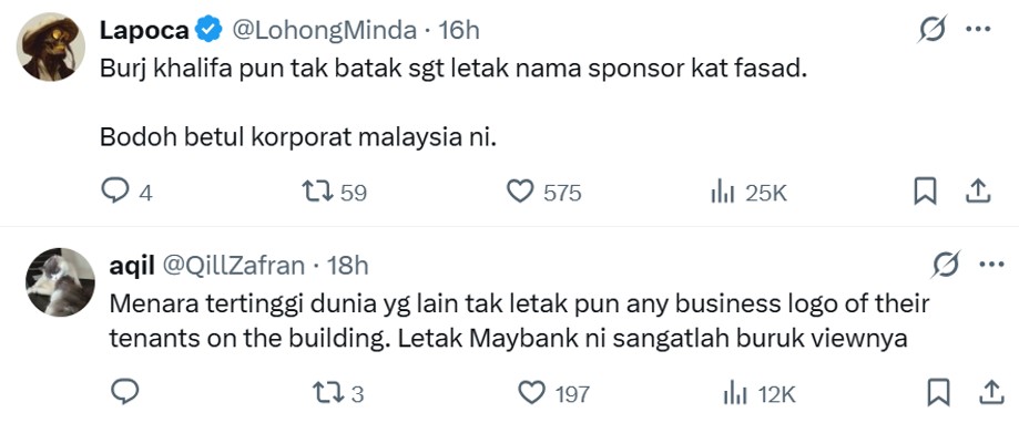 This has yet to be confirmed by either Maybank or PNB which is the building owner. More than a few commenters saw the taking down of the signage as a ‘win for the people’ and that online pressure can actually force major corporations into a climbdown.