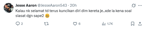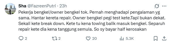On the other hand, @FazreenPutri shared that she had a similar experience. Then there was @JesseAaron543 who sarcastically said the worker from the workshop should just lock himself up in the car to be safe.