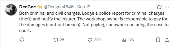 According to netizen @Deegee4646, this case was liable for criminal and civil charges. “If he brings the car out without permission and knowledge from the owner, that is stealing,” said @najib_jaafarB2u.