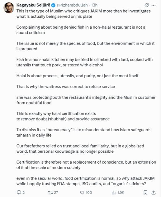 “Let it declare that corruption is haram, that abuse of office is haram, that siphoning billions meant for the rakyat is haram. Let halal certification apply not only to foo, but to governance itself.”