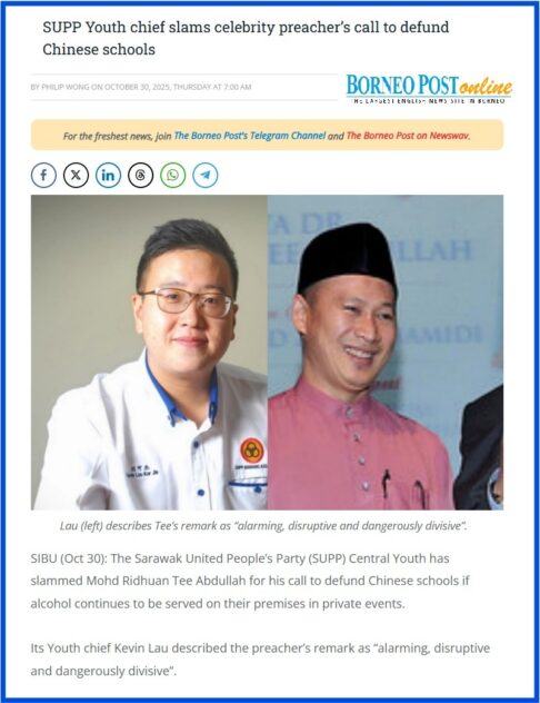 Ridhuan Tee wants to eliminate Chinese schools over alcohol at fundraising events. Let’s be clear: THIS IS NOT about Islamic principle. It is about using religion as a weapon to attack educational institutions serving hundreds of thousands of Malaysian children.