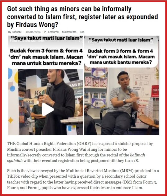 Firdaus Wong produced videos instructing people how to secretly convert minors without parental knowledge, thus directly violating Article 12(4) of our Federal Constitution.