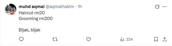 “He was so shocked that he sat down,” said netizen @ieka_majid. “Bring your pet for grooming,” commented netizen @ItikRel while @aqmalhakim pointed out the lady’s wisdom, stating that a haircut was just RM20 while a groomer will charge RM200.