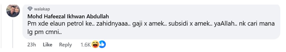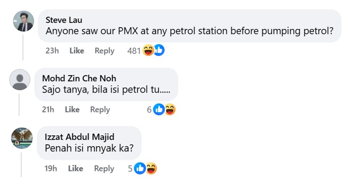 This mocking tone was prevalent in scores of comments, indicating many Malaysians are unimpressed by PMX’s public relations exercise. One sarcastically expressed disappointment that PMX was using RON95 instead of higher-grade fuel.