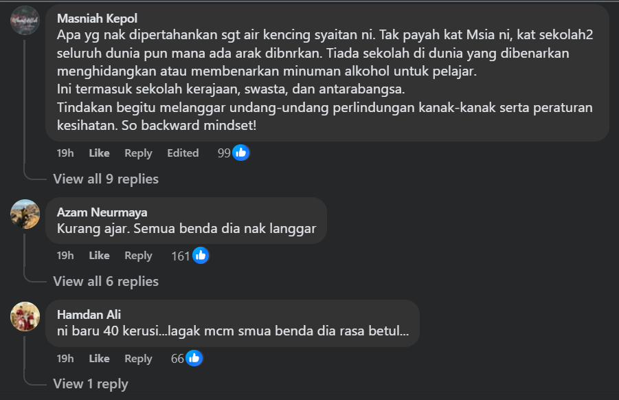 This was till yesterday (Oct 24) evening when Madani government spokesman Datuk Fahmi Fadzil reiterated that the serving of alcohol at events in school halls will follow the Education Ministry’s current guidelines that and no new guidelines will be issued.