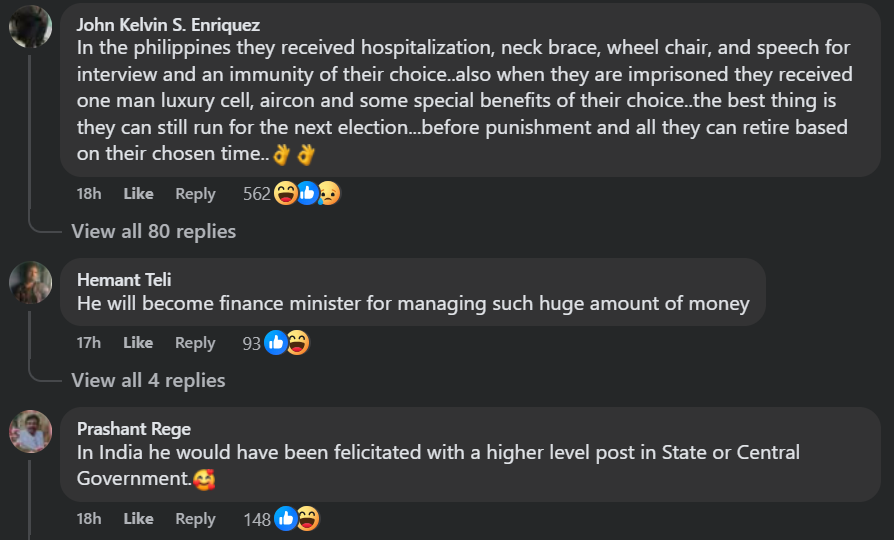 A browse at the responses from international commenters tended to point to a similar trend of government practice – that the rich and powerful politicians tended to be let off the hook with minimum punishment or none at all.