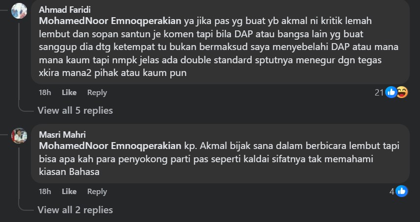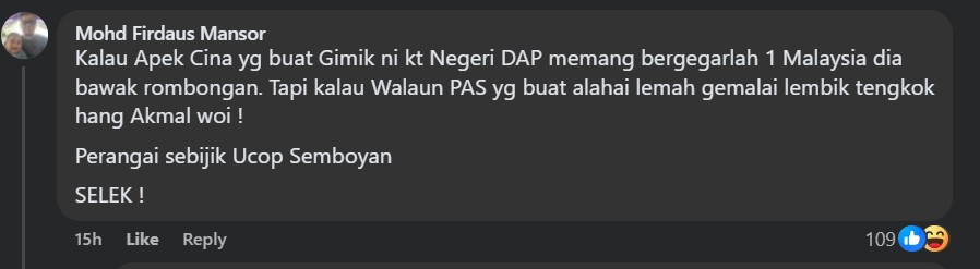 What is obvious, as some commenters have long observed, Akmal “has seemingly been polite when touching on PAS-related matters but has no qualms to even turn up at the place” if such oversight has been committed by “DAP or other races”.