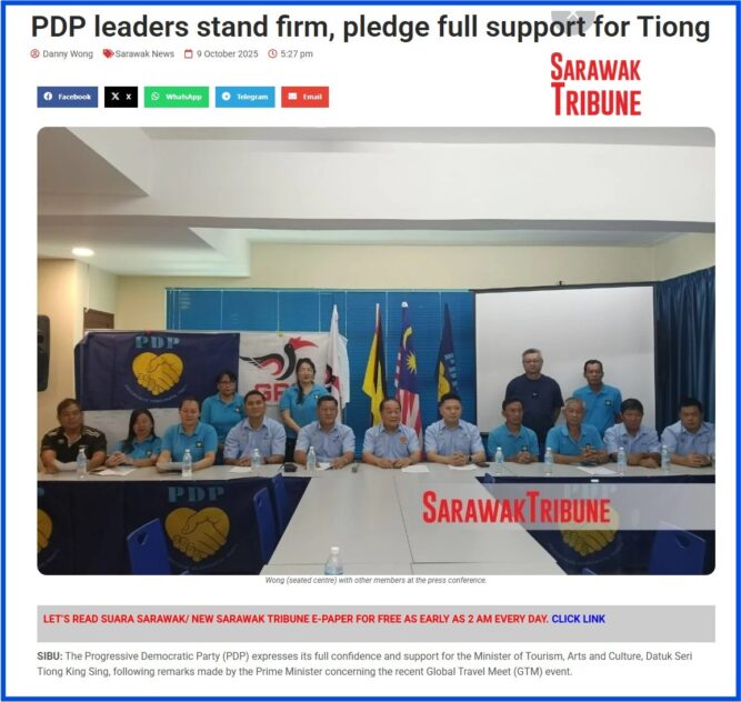 Reacting to the stern reprimand by Prime Minister Datuk Seri Anwar Ibrahim on Tiong, PDP insisted that Tiong has always carried out his duties with sincerity, integrity and dedication to the nation’s interest.