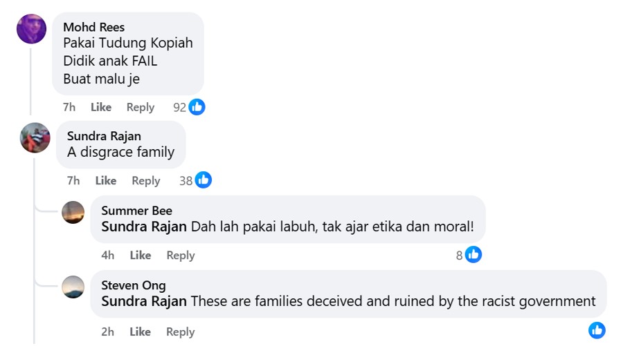 Other commenters labelled the family “disgraceful”, highlighting that the parents were dressed in conservative religious garb yet displayed such a lack of moral values or basic civic-mindedness.