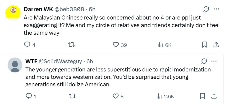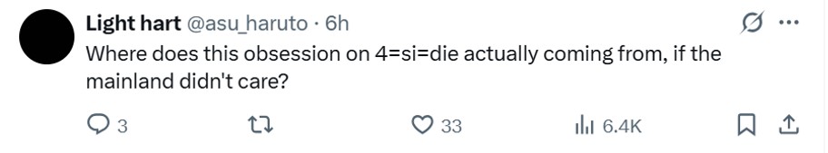 It was thus noted with no small amount of irony by Lee Seng Foo (@sengfoo88) on X that this trepidation over the number “4” is not shared by mainland Chinese.