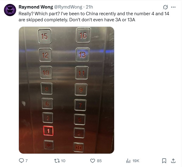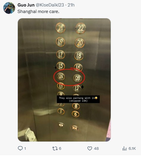 Nevertheless, some commenters contended that they have noticed similar lift panels in China which excluded the digit “4”, denoting that what was revealed by the poster could be a modern trend given some still hold on these old beliefs.