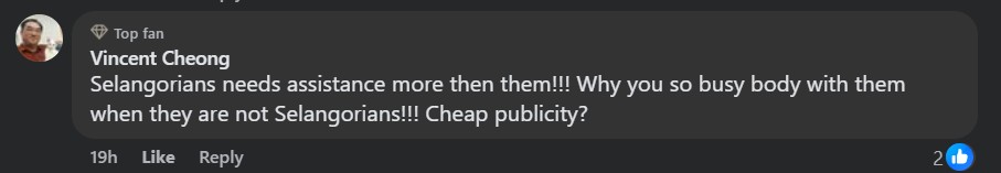 True the age-old adage charity starts from home, some presumably Selangorians, too, feel that such funding would be better off channelled to assist underprivileged groups in the state such as the “Orang Asli in Serendah”, “to solve many problems in Little India” or even to mend “broken infrastructure” such as roads and bridges.