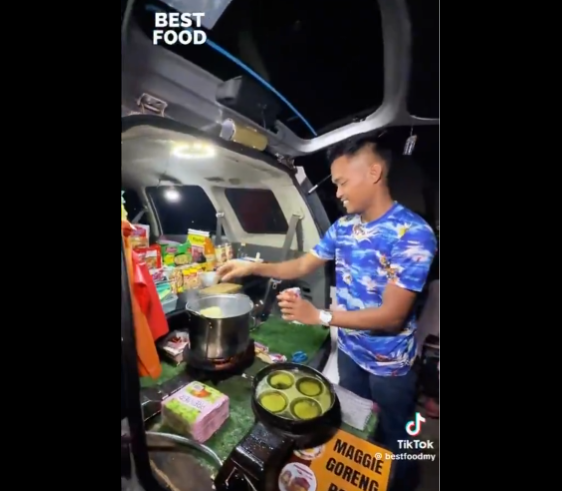 In a video post by netizen @bckupacc99, a man could be seen serving Maggi Bonnet to a customer. The name was obvious since the noodle is made at the bonnet of the car.