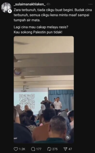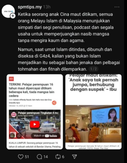- The entire Malay Muslim stood in solidarity to support a Chinese child who was stabbed to death but no such reciprocity when Muslims in Gaza are oppressed, tortured and killed in Gaza.