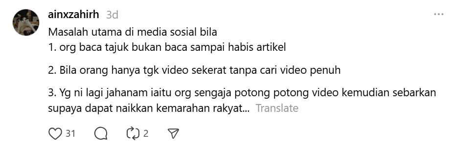 - The worst is when people intentionally edited the video and then spread it to raise the anger of the rakyat.
