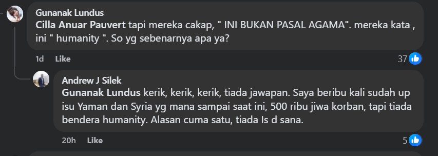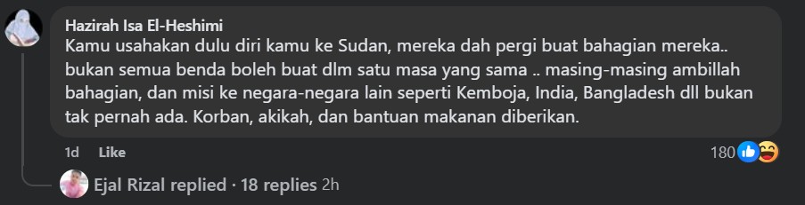 However, the justification of “Palestine being the land of the prophets” made one presumably non-Muslim commenter wondered if the GSF mission is tied to religion or that it is purely a “humanitarian mission”.