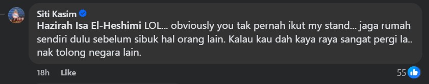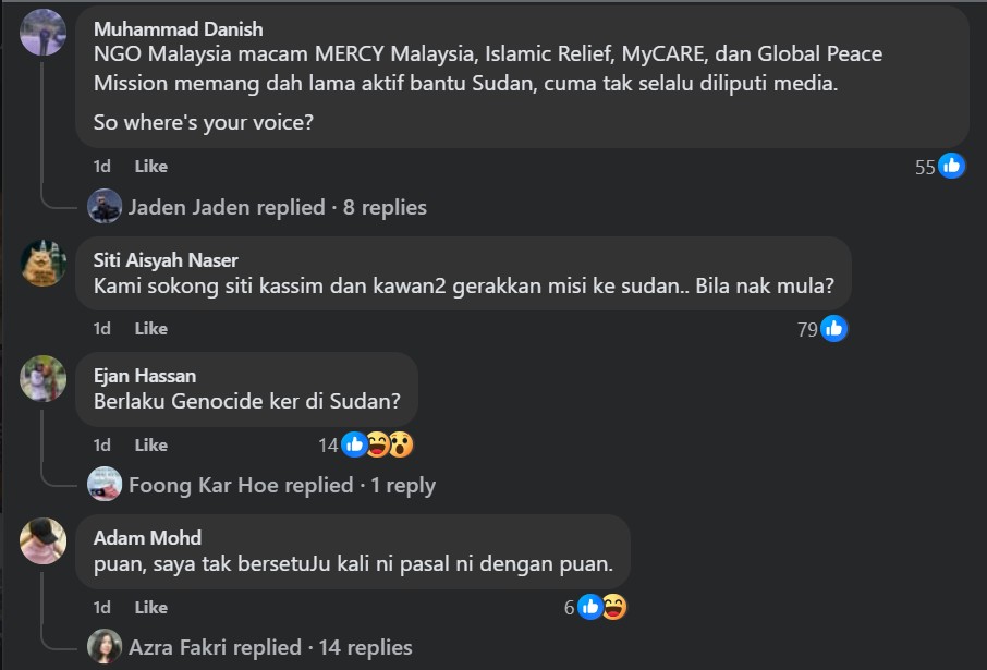 Many also entered the fray to mock Siti Kasim by raring her to mobilise her own mission to Sudan.