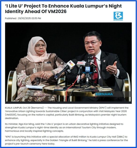 This came about following a viral clip of a media conference yesterday (Oct 30) on the “I Lite U” project in conjunction with Visit Malaysia Year 2026 (VMY 2026) whereby the Malay language daily journalist had purportedly asked why the name of the initiative was in English instead of Bahasa Malaysia (BM).
