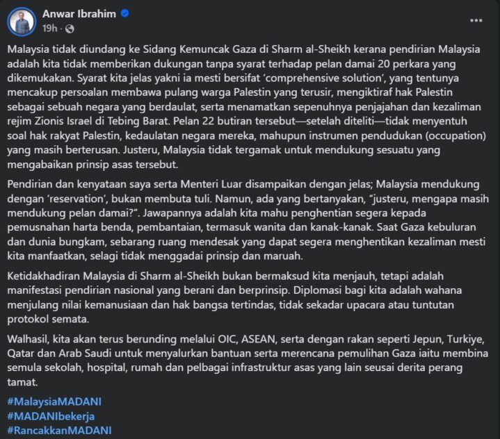 WHEN world leaders gathered in Egypt recently to witness the signing of the ceasefire deal to end the Gaza war, one prominent leader was conspicuously absent – the outspoken Malaysian Prime Minister Datuk Seri Anwar Ibrahim.