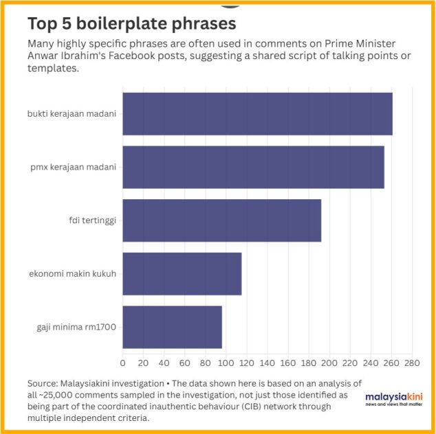 “Their probe found a network of 263 Madani cybertrooper accounts working in coordination to fake support for PMX – responsible for about 25% of all comments on PMX’s social media accounts,” trumpeted the once lieutenant of disgraced former premier Datuk Seri Najib Razak.