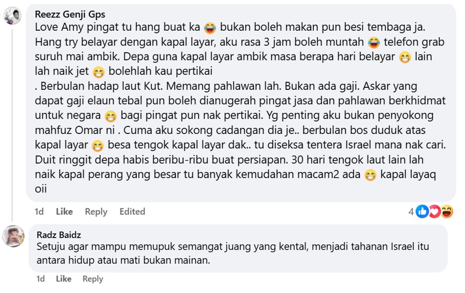 This seems to be the sentiment that greeted the suggestion by Amanah’s vice-president Datuk Mahfuz Omar that volunteers involved in the Global Sumud Flotilla (GSF) humanitarian mission deserved official national recognition for willing to risk their lives facing the Israeli military without any weaponry or guarantee of safety.