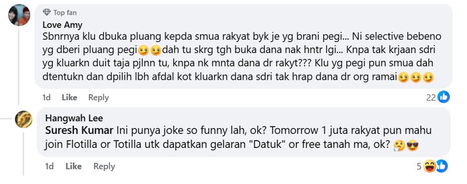 One commenter went on to urge the Madani government to declare a public holiday so that the entire nation can also “celebrate” the so-called achievement of the GSF volunteers.
