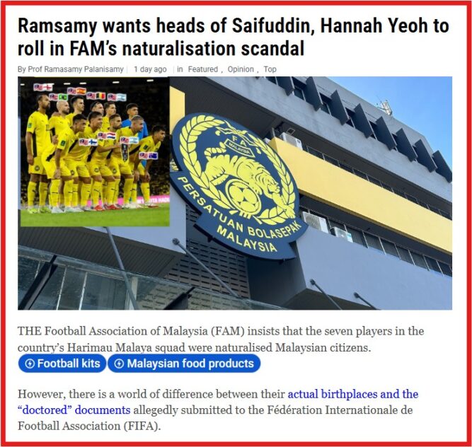 Editor’s Note: This can be deemed a ‘milder’ sequel to yesterday’s (Oct 7) ‘more hard-hitting’ piece entitled “Ramsamy Wants Heads of Saifuddin, Hannah Yeoh to Roll in FAM’s Naturalisation Scandal”.
