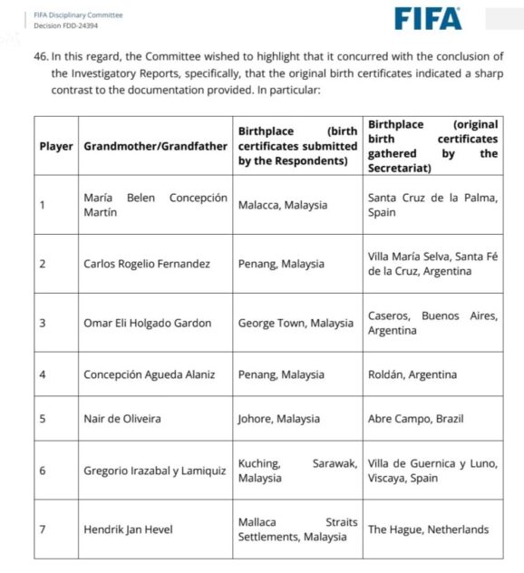 The evidence seems to suggest that the seven players were foreigners who may not have properly completed the naturalisation process. To meet FIFA’s registration deadline, the documents were allegedly falsified.