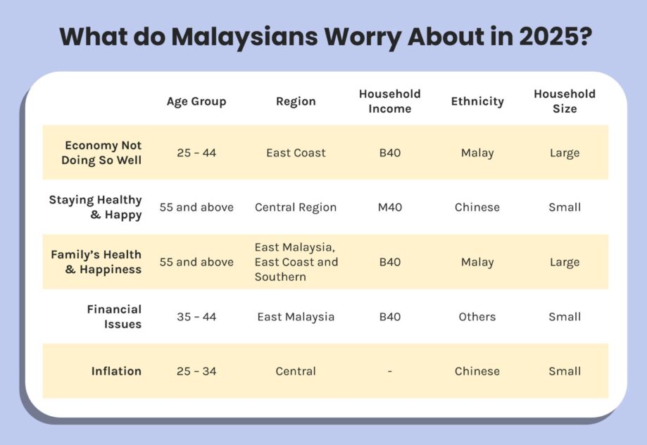 The report highlights that Malaysians in 2025 are narrowing their focus to immediate financial realities and family well-being, reflecting a practical mindset shaped by both lifestyle and economic considerations.
