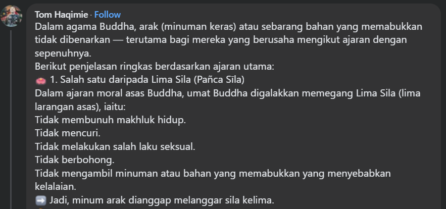 Back to dragging Buddhism into the equation, another Chinese commenter enlightened Tom Haqimie that Buddhists harbour no interest in playing the role of moral police.
