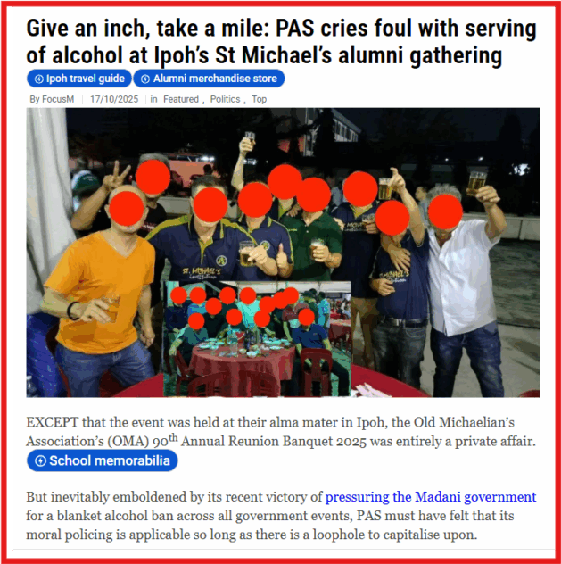 Recall that a Christian lady has also chided PAS Parit MP Muhammad Ismi Taib who made a fuss over ‘free-flow’ alcohol at the Old Michaelian’s Association’s (OMA) 90th Annual Reunion Banquet 2025 at their alma mater in Ipoh to “get it right before quoting the Bible”.
