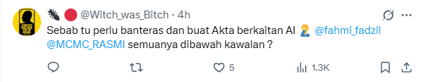 Netizen @Witch_was_Bitch further suggested that the law should deal with AI related matters while @burungbiru00 said slander through AI is becoming more widespread.