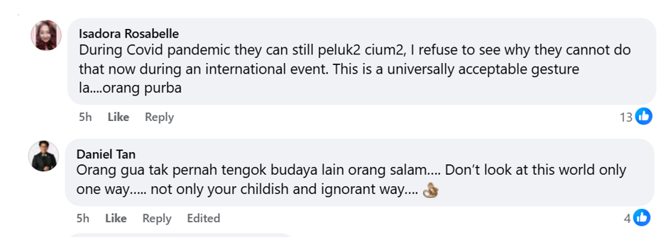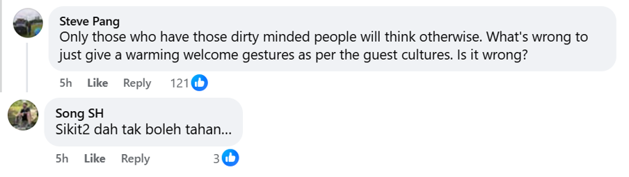 Some had some choice words for those seeking to sensationalise a harmless welcome embrace, accusing such holier-than-thou keyboard warriors of having “dirty minds”.