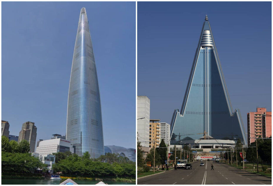 THERE are two tallest buildings on the Korean peninsula and both stand in sharp contrast to each other.