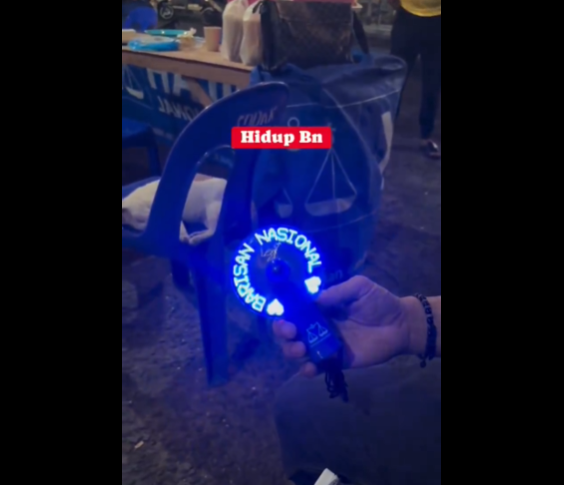With the press of a button, the fan will twirl, and the blades light up with the words Barisan National on it. The gift has since drawn admiration and ridicule from supporters and critics alike.