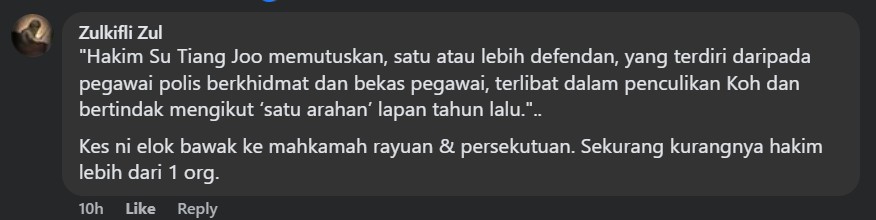 On the bright side, however, oner commenter hoped that the KL High Court’s landmark judgment “will push the authorities to come clean in their investigations” with an eventual favourable outcome for the case involving Ipoh kindergarten teacher M. Indira Gandhi.