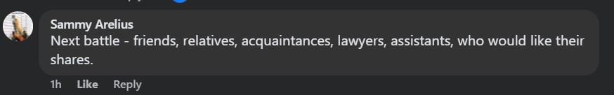 Even as there is no confirmation yet of the actual payout sum pending the appellant and Federal Courts’ decisions, one cheeky commenter reckoned that the next battle for the Koh’s family is that of “friends, relatives, acquaintances, lawyers, assistants who would like their shares”.