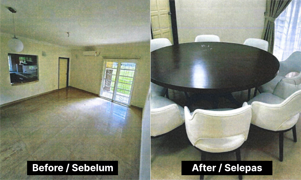 Tei also provided “before and after” photographs of various rooms in the Putrajaya residence, showing upgraded furnishings, beds, lighting fixtures, and curtains.