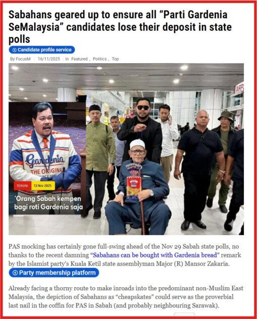 Perhaps, PAS assumes that since Sabah is regarded as the poorest state in Malaysia, Sabahans are more concerned about (Gardenia) bread-and-butter issues.
