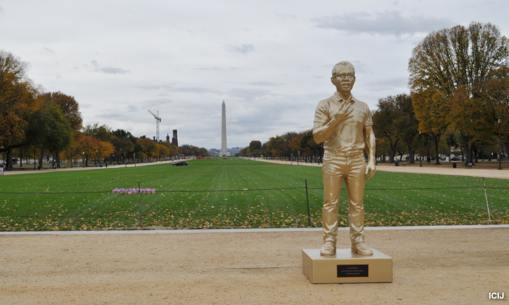 On a Tuesday in late October, a 10-foot-tall statue of Zhao appeared on a gravel pathway less than a mile from the US Capitol.