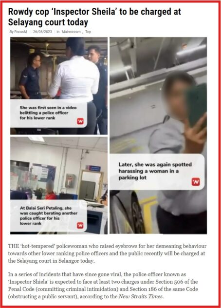 It also appears that PDRM (Royal Malaysia Police) is stuck as to how to handle this in-your-face individual who has obviously rubbed a few people the wrong way given she has been suspended since June 23, 2023.