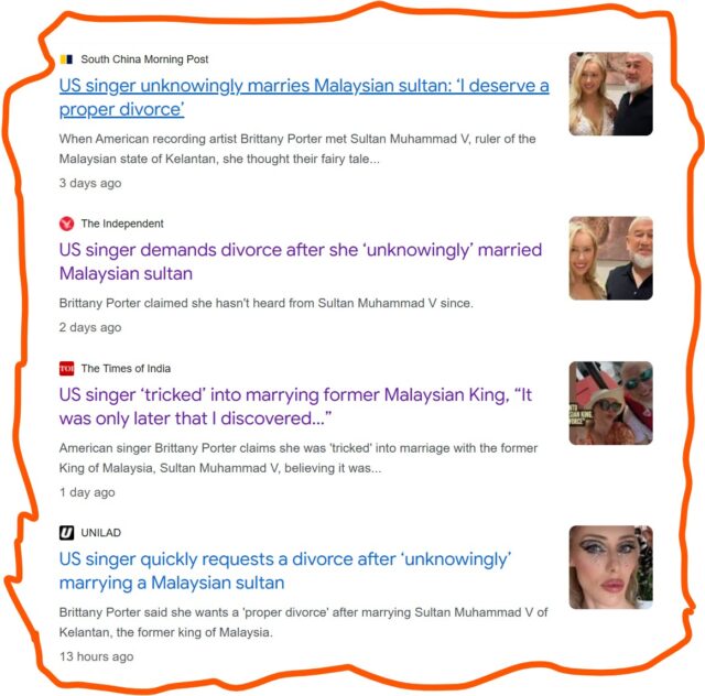 KELANTAN ruler Sultan Muhammad V has again made headlines after American singer Brittany Porter alleged that she unknowingly married the former Agong after what she believed was an engagement a.k.a. nikah ceremony turned out to be a legally binding Islamic marriage.