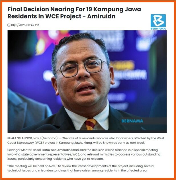 Chances are that the homes of the 19 residents in Kampungg Jawa, Batu Ampat, Klang might be demolished to make way for completion of the West Coast Expressway stretch Banting and Taiping (WCE).