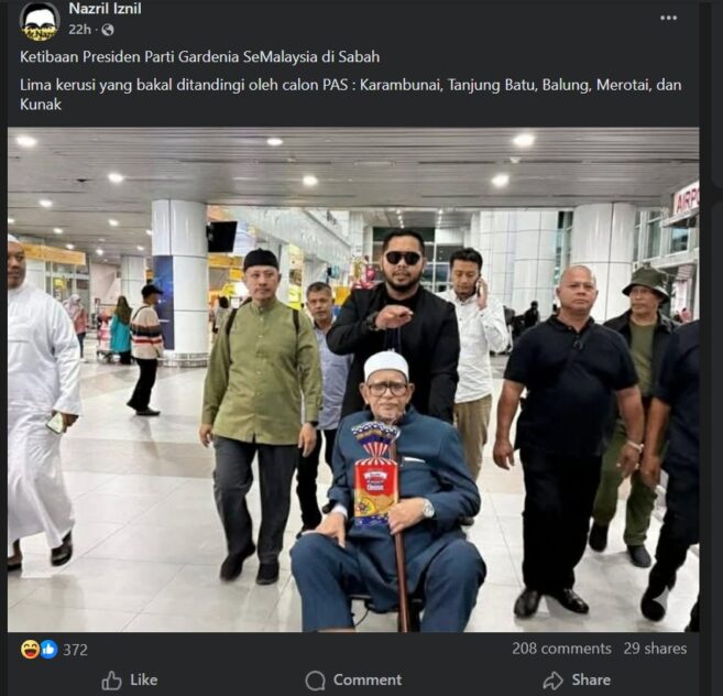 Madani government backers on the Rakan Nurul Izzah Anwar public group also seized the moment to mock PAS’ head honcho Tan Sri Hadi Awang who is depicted arriving at the Kota Kinabalu International Airport on a baby-stroller-like wheelchair holding a loaf of the Gardenia white bread.