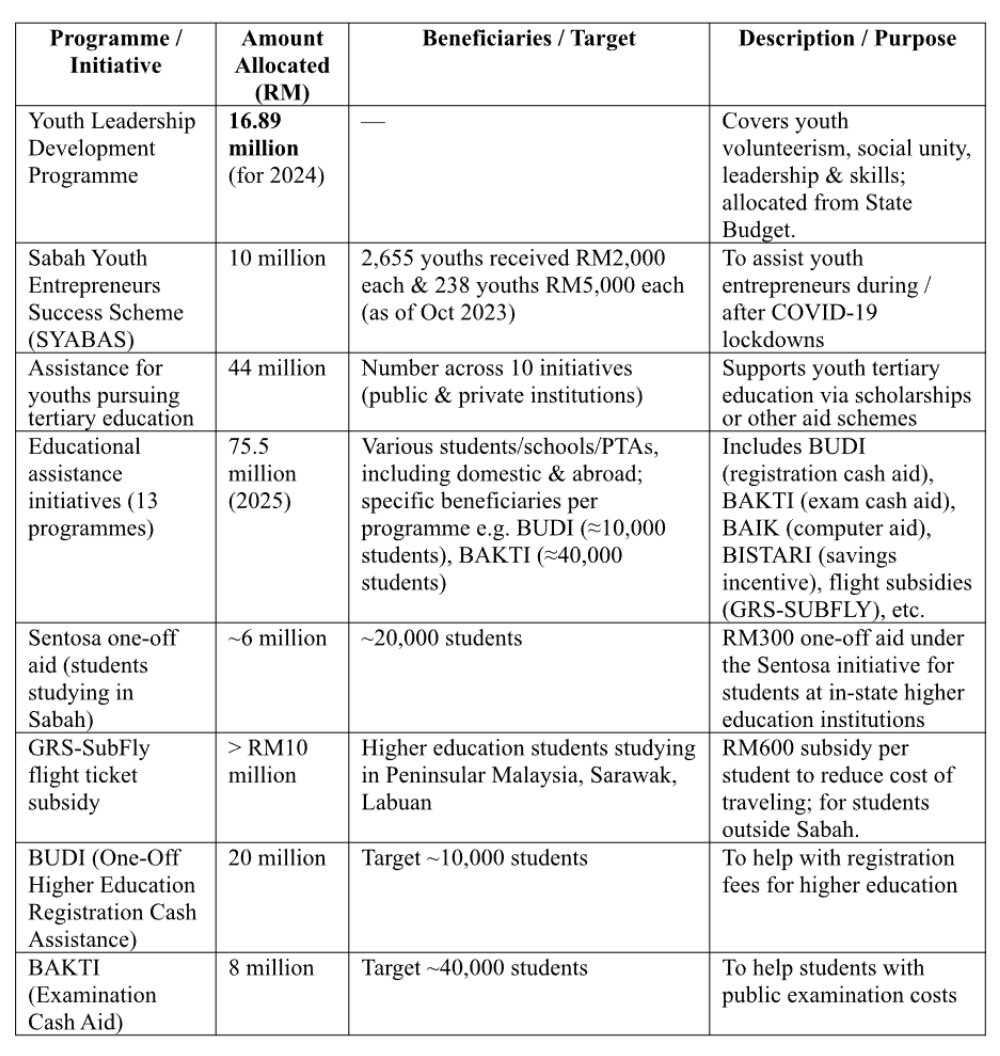 Below are the initiatives of the Hajiji Noor government, primarily emphasising assistance for education. It remains to be seen whether this outreach will be enough to turn around the relatively low political support of the youth, of an estimated 18 percent of those under 30.