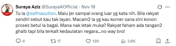 While rightists praised him for ensuring that applicants are vetted on their ability to speak the national language, detractors ticked off Saifuddin for his PR (public relations) stunt by subjecting “our elderly through infantilising and demeaning conversations to prove their right to a citizenship”.