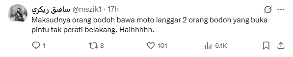 Netizen @mszik1 who watched the video, however, was not impressed. According to him, the incident happened all because of the foolishness of the three people in the video.