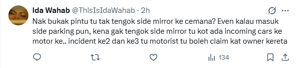Another netizen pointed out that they should have checked their side mirrors before simply opening the car door. He said where incident two and three are concerned, the motorcyclists could claim damages from the car owner.